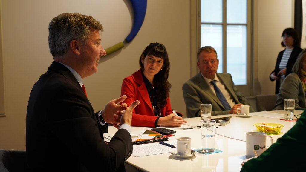 Recibimos al Dr. Benedikt Franke CEO y Vicepresidente de la Conferencia de Seguridad de Múnich, en su visita a Buenos Aires, acompañado por el Sr. Dieter Lamlé, Embajador de la República Federal de Alemania en la República Argentina